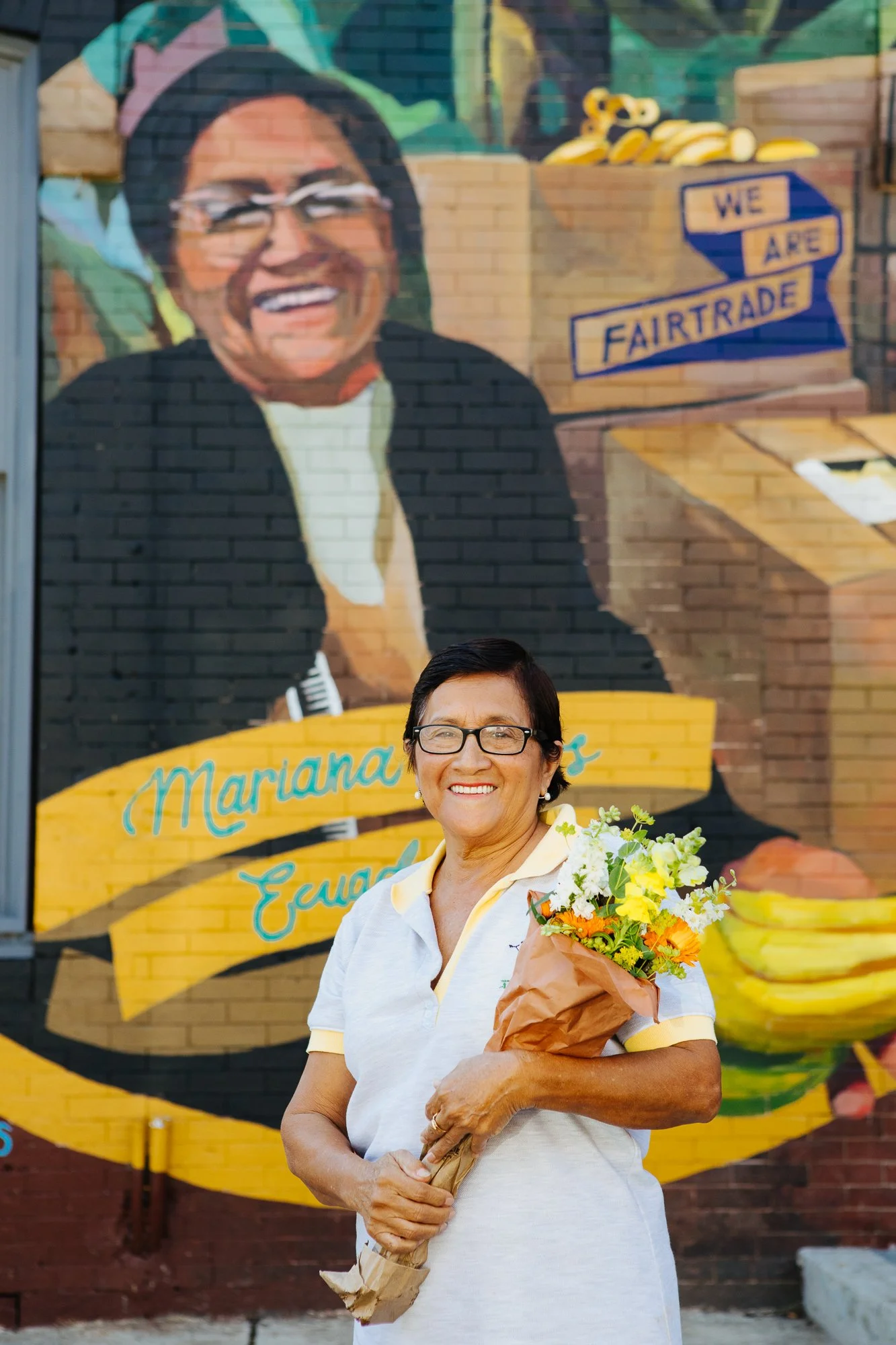 Mariana’s dedication to ethical, sustainable banana growing is one of 124 reasons that AsoGuabo is such a strong cooperative. With this in mind, we decided to collaborate with artist Betsy Casañas to portray Mariana’s likeness on a mural at Riverwards Produce Market in Philadelphia, Pennsylvania, a proud purveyor of Fairtrade bananas from Equal Exchange–a Fairtrade brand partner that sources bananas from AsoGuabo.