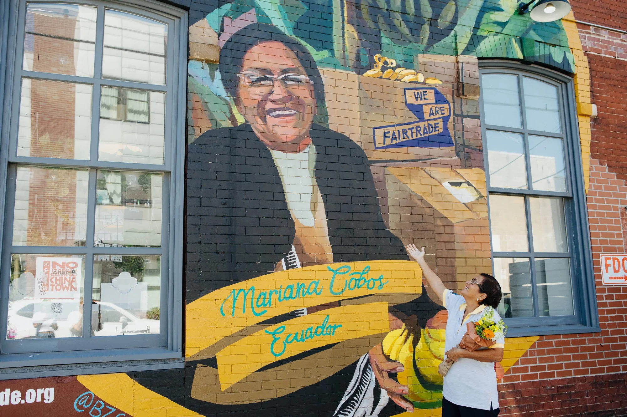 In Philadelphia, we are proud to partner with Riverwards Produce Market and local artist, Betsy Casañas, to celebrate Mariana Cobos, a Fairtrade farmer in Ecuador who grows bananas sourced by Equal Exchange!